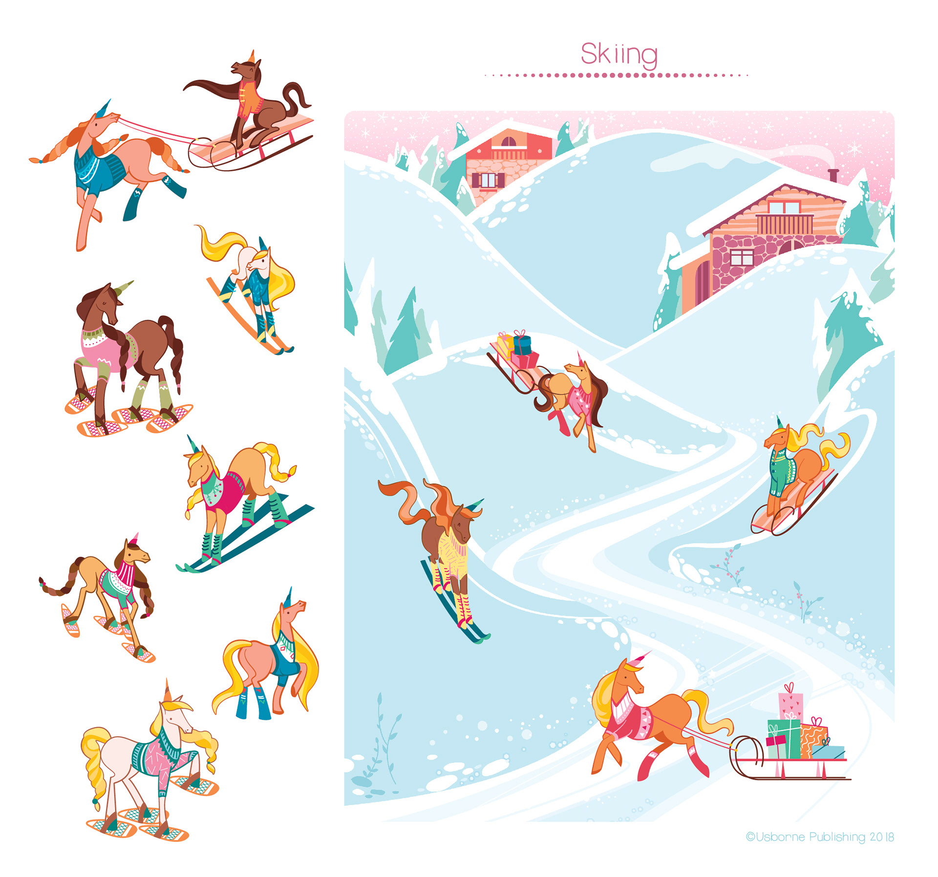 Christmas rubdown book about unicorns and winter, published by Usborne Books